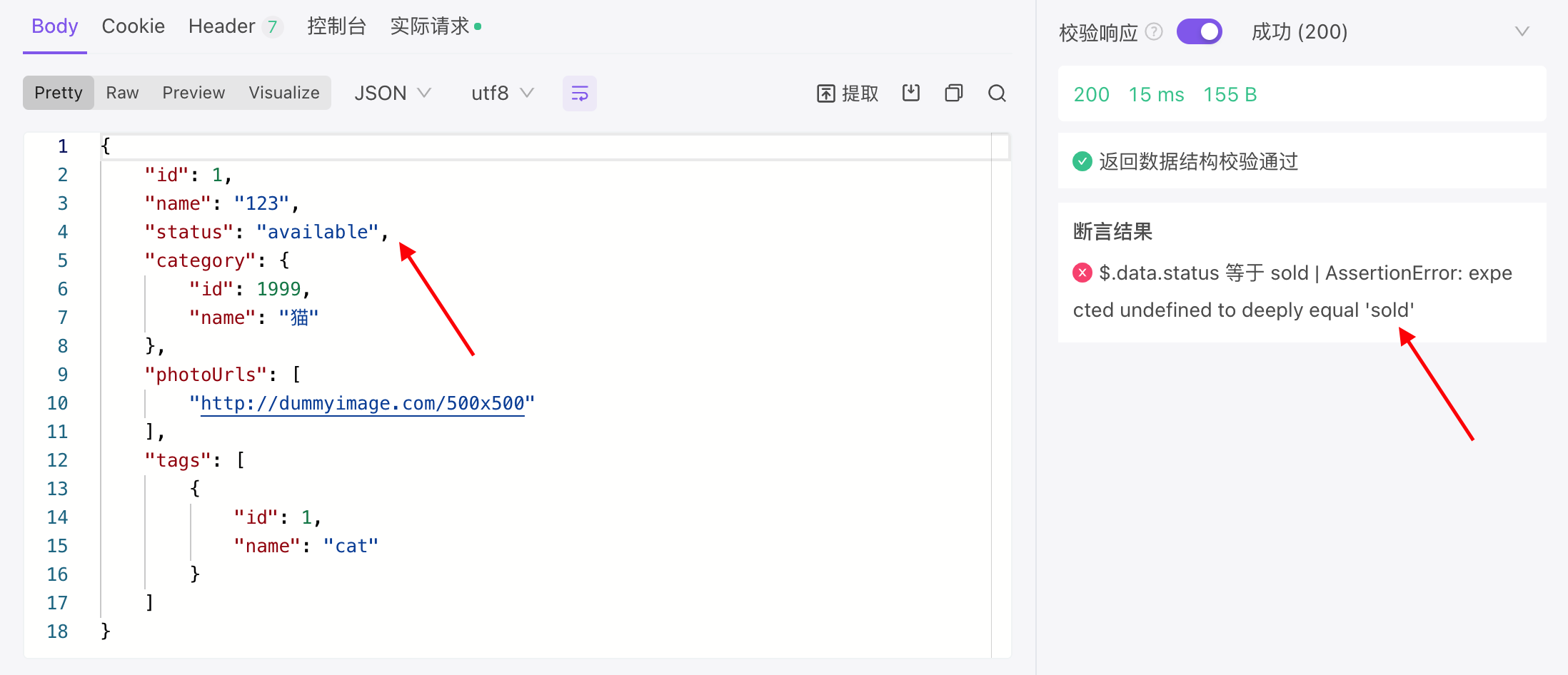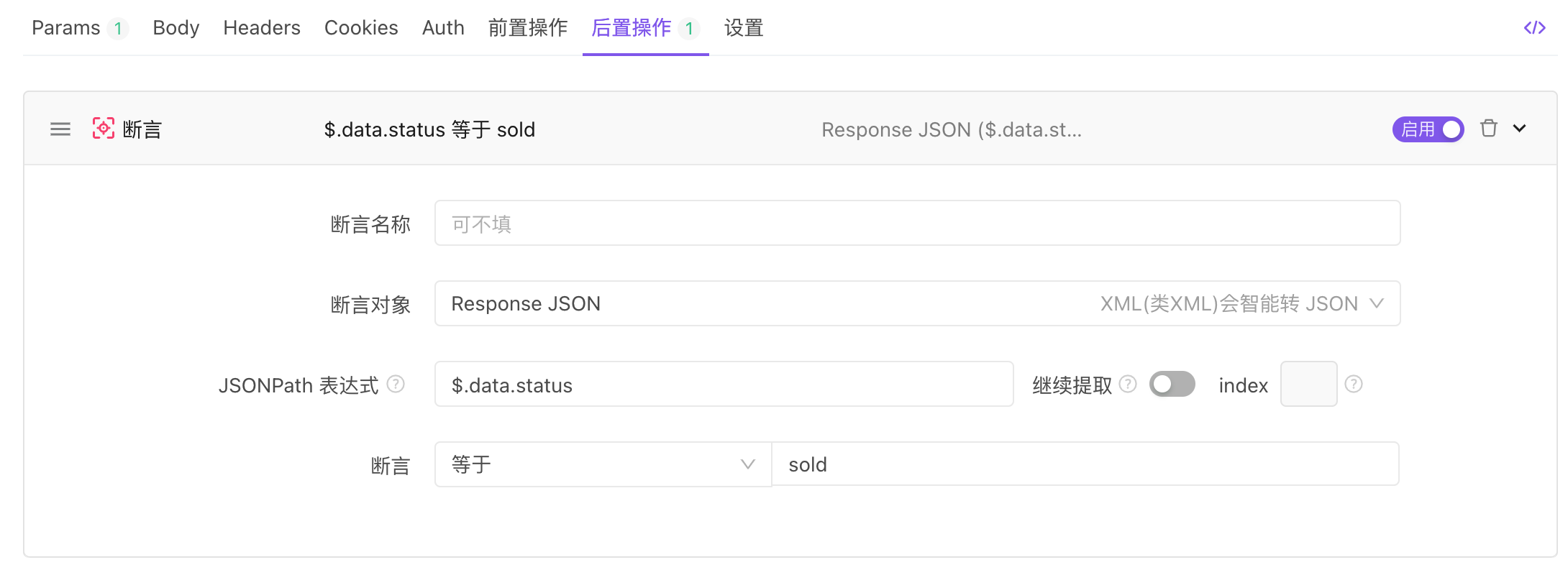 后置操作支持添加断言,可对接口返回的数据(或响应时间)设置断言,判断是否符合预期。