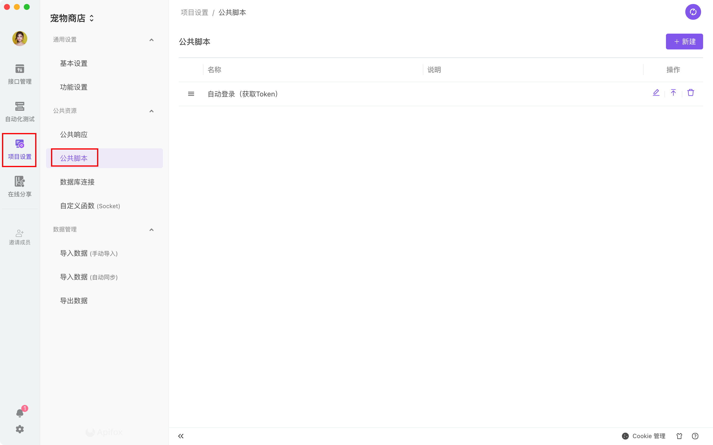 打开项目设置->公共脚本,在这里管理公共脚本。