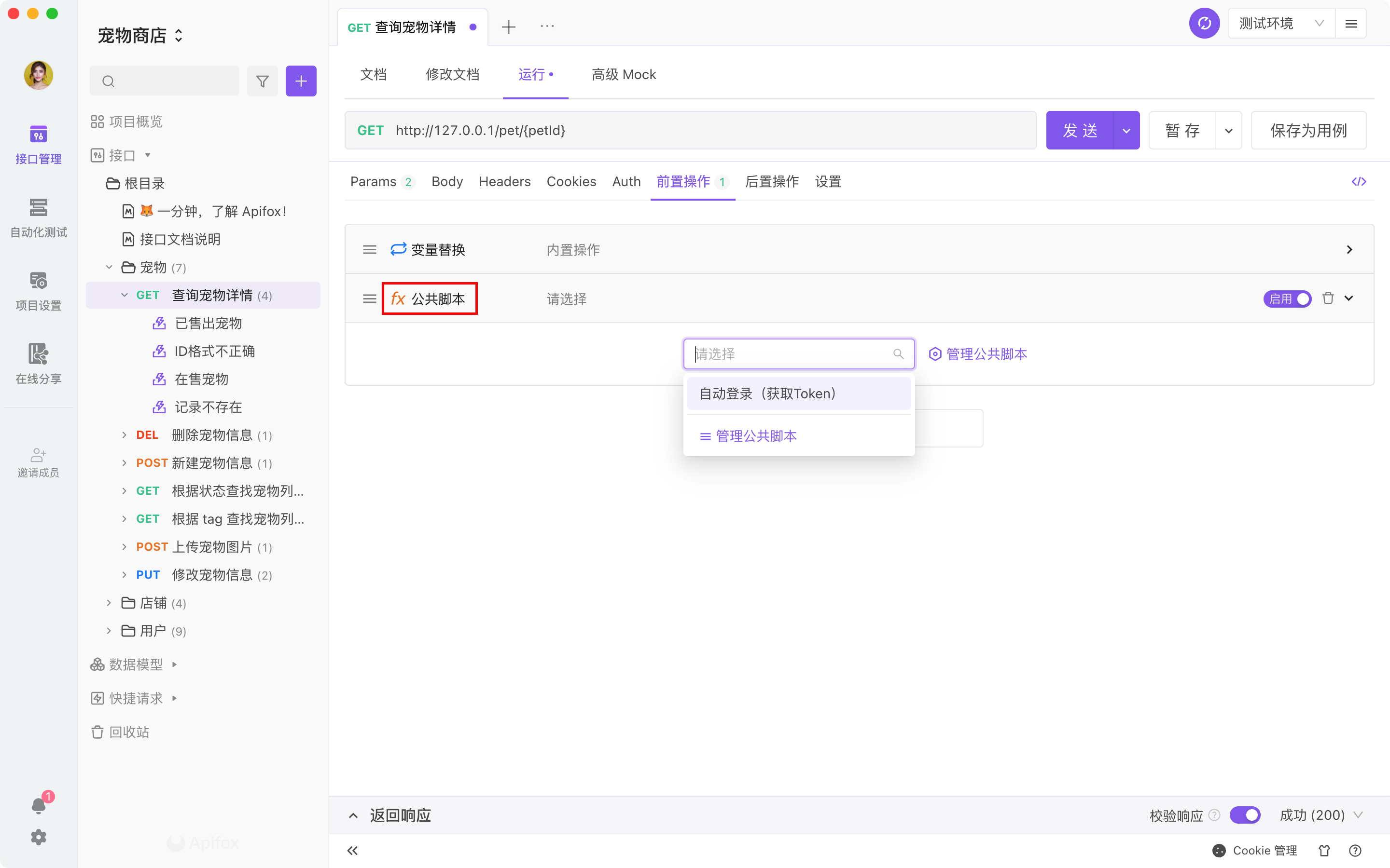 接口运行界面或接口用例界面的前置操作和后置操作,可直接引用公共脚本。